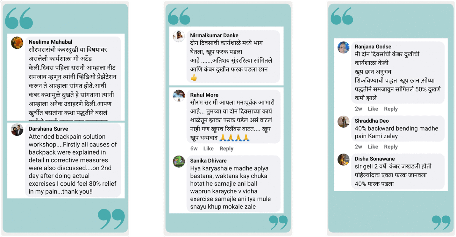 या उपचारात काही सोपे व्यायाम प्रकार आहेत जे आम्ही ऑनलाईन zoom च्या माध्यमातून live शिकवितो आणि करून घेतो.
